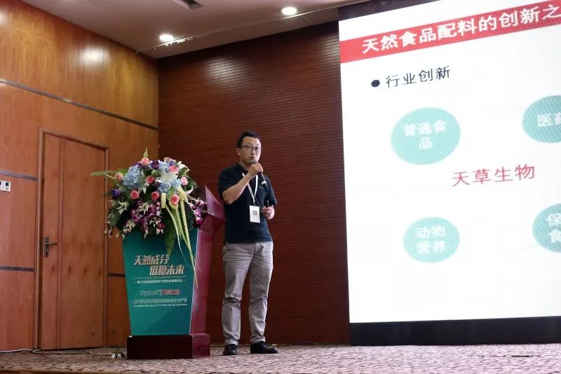 從植物提取物原料生產(chǎn)商的視角出發(fā),天草生物研發(fā)總監(jiān)程勇及保健品部總監(jiān)楊仲儒提出國內(nèi)飲品創(chuàng)新可從單一元素向多元化及個性化方向發(fā)展,發(fā)揮植物功能原料協(xié)同效應(yīng),并結(jié)合大宗化的中國傳統(tǒng)草本食材,升級為獨(dú)特又健康的功能飲料配方。同時,程總監(jiān)介紹到了利用天草專有提取技術(shù)制備的——能提供能量(含有天然咖啡因)的茶提取物、咖啡豆提取物,能幫助舒緩壓力的天然茶氨酸,能提升免疫力的人參提取物,以及其他多種功效類天然食品原料。
