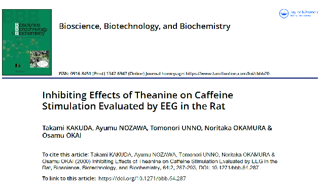 一篇名為《采用大鼠腦電圖,研究茶氨酸對(duì)咖啡因興奮的抑制作用》的文獻(xiàn)資料得出結(jié)論。