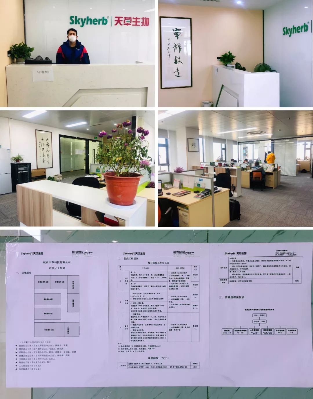 杭州天草科技有限公司緊隨總部浙江天草步伐,于今日正式復(fù)工!杭州天草目前涵蓋所有業(yè)務(wù)部門——國(guó)際業(yè)務(wù)部、植化事業(yè)部、保健品部、市場(chǎng)部,將更好更全面地為客戶朋友們服務(wù)。