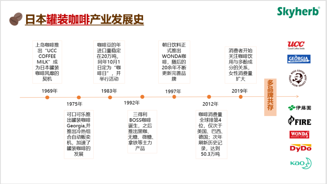 從1969年至今,日本罐裝咖啡市場不斷推陳出新,罐裝咖啡的消費(fèi)量也遠(yuǎn)高于中美兩國,罐裝咖啡已發(fā)展成為日本一種獨(dú)特的文化,多元化的產(chǎn)品給了中國即飲咖啡開發(fā)更廣的參考意義。