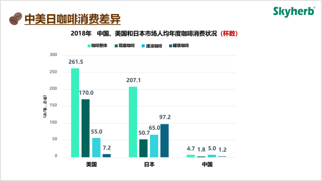 咖啡作為美國和日本消費(fèi)者的高消費(fèi)快消品,在兩國的消費(fèi)也存在差異,美國人消費(fèi)現(xiàn)磨咖啡比速溶咖啡要多,而日本人是罐裝與速溶咖啡消費(fèi)量超過現(xiàn)磨咖啡,兩國的差異也導(dǎo)致了市面上不同品類的產(chǎn)生,而國人相比而言,咖啡消費(fèi)力還遠(yuǎn)不如日本和美國,但日益升溫的消費(fèi)量,讓各家飲料巨頭都紛紛出手布局新的產(chǎn)品。