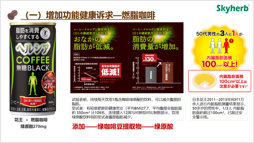 咖啡與燃脂在概念上相對較搭,添加同是咖啡來源的綠原酸,更加契合,同時(shí)綠原酸的減脂功效一直受關(guān)注并肯定,且當(dāng)今社會(huì)現(xiàn)代人對體重的要求更加嚴(yán)格,愿意嘗試新品,在分享咖啡美味樂趣的時(shí)候能讓自身減脂,是消費(fèi)者樂意去嘗試的感官體驗(yàn)。