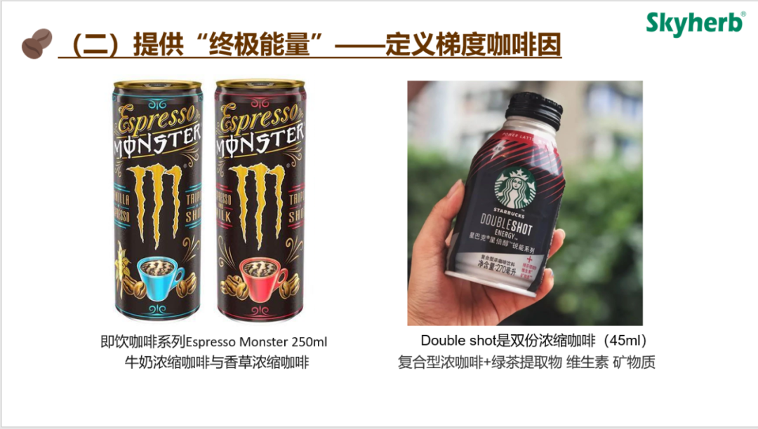 都市人節(jié)奏快,睡眠不足,白天高壓工作,需要打足十二分精神來面對每日的工作,早上醒來一杯咖啡醒腦,中午一杯咖啡沖散困意,晚上還來一杯持續(xù)加班,因此不少咖啡嗜飲者早已經(jīng)不滿足常規(guī)咖啡因含量的咖啡飲品,而是追求更刺激的體感,于是出現(xiàn)了double shot、triple shot。試想我們定義梯度咖啡因,給消費(fèi)者不同層次的感受,給他們不可抗拒的“終極能量”,興許會(huì)是一種更直觀的“銷售”體驗(yàn)。
