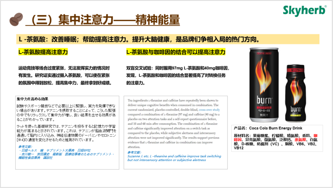 焦慮感滿棚、開會(huì)前要做報(bào)告的緊張感、容易受環(huán)境影響到工作的親們,需要能讓自己冷靜下來,F(xiàn)ocus到自己的節(jié)奏中,那么在日常飲用咖啡中添加一些讓人放松的功能因子,就是比較不錯(cuò)的概念了。