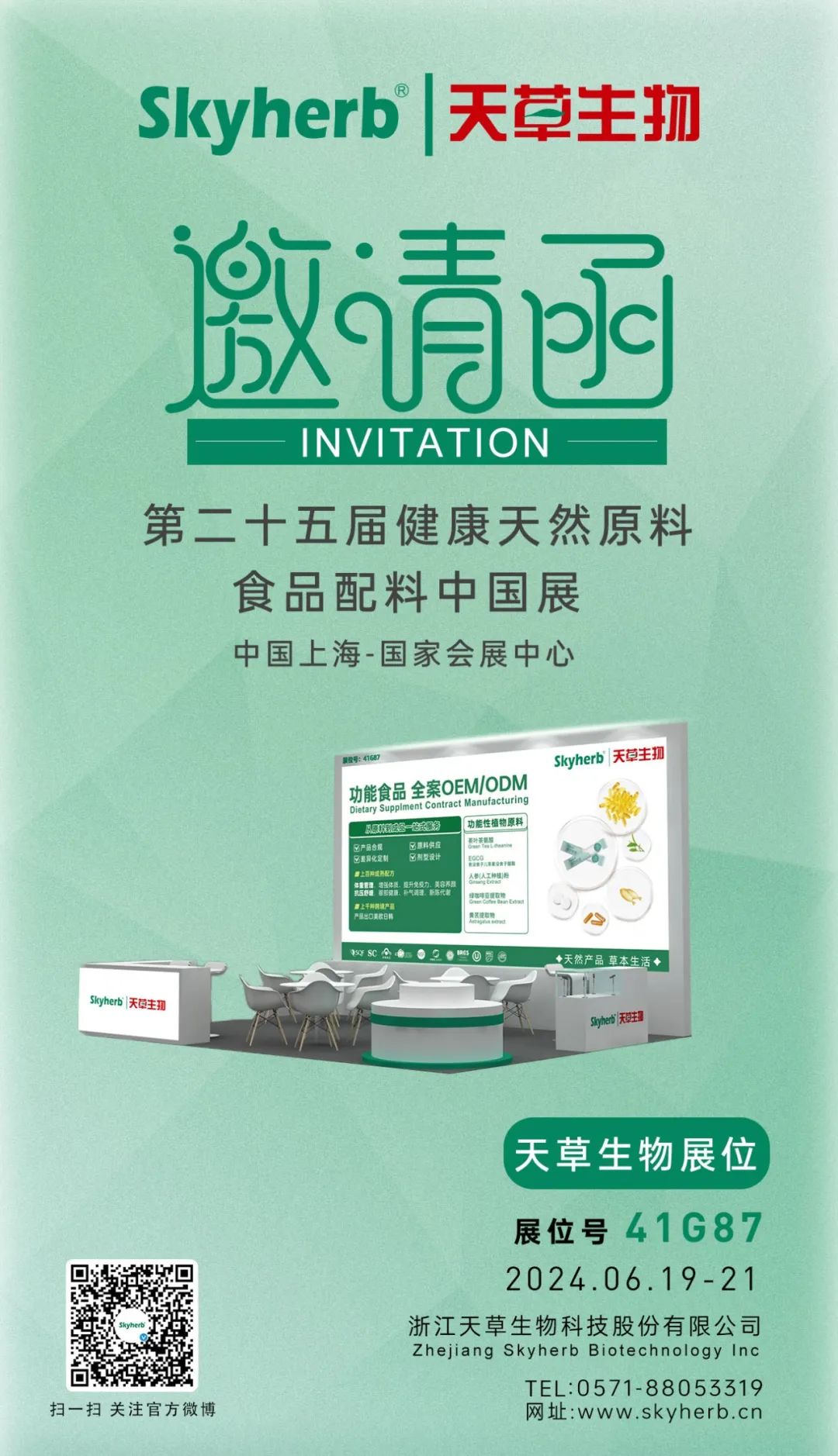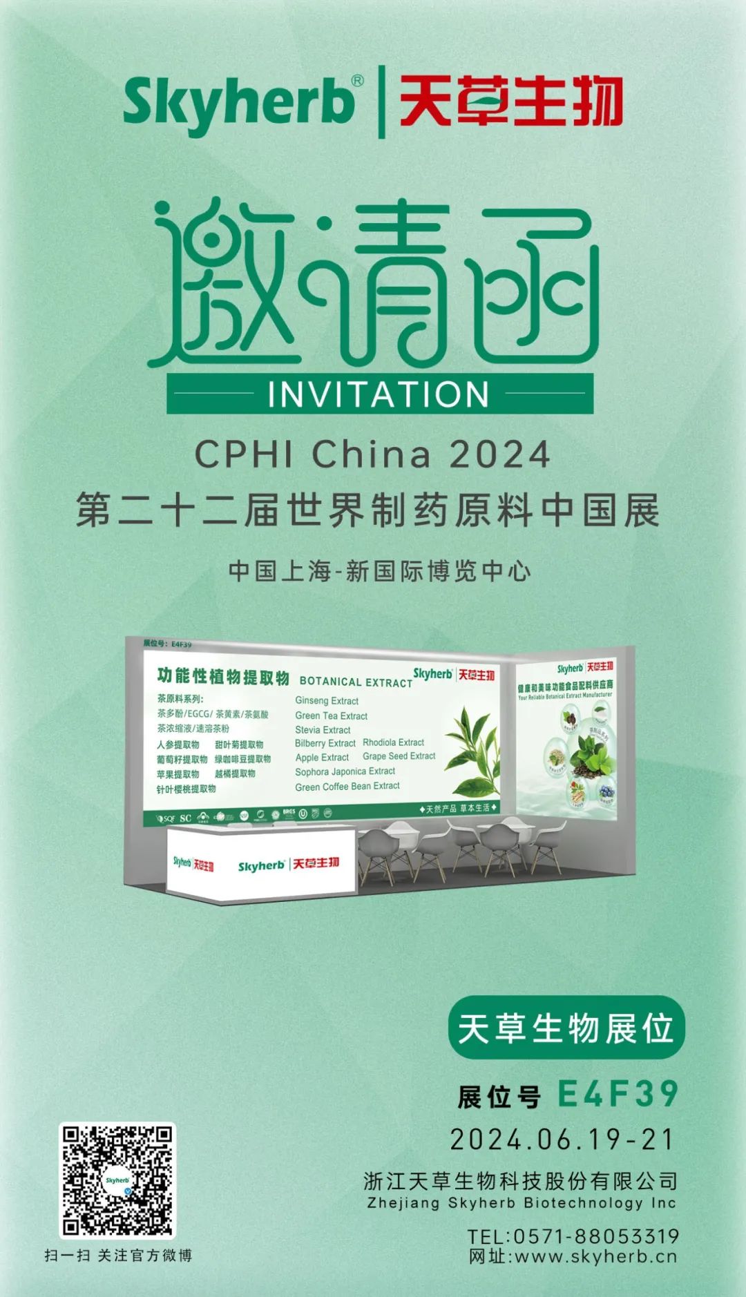 2024年6月19日-21日,FIA 展(暨第二十五屆健康天然原料食品配中國展)將于上海國家會展中心舉行,天草生物誠邀您來參會。一如既往,我司也參展了同期舉行的展會CPHI China 2024,地點在上海新國際博覽中心。